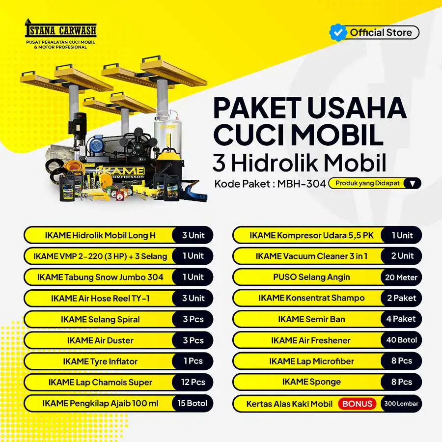 Paket Peralatan Cuci Mobil 3 Hidrolik, MBH-304